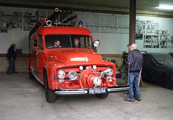 Op 1 november 2023 bracht garagehouder Henk-Jan Dijkhuizen samen met zijn zoons deze oude krachtpatser bij ons onder dak . De Ford werd door de gemeente Oude Pekela in 1959 in dienst genomen en is sedertdien onafgebroken bij garage Dijkhuizen mechanisch in onderhoud geweest; De perfecte staat van de carosserie is te danken aan de inzet van enkele (oud-) brandweerlieden die vrijwillig daarvoor zorg hebben gedragen. Met zijn 8 cilinder benzine motor en enorme bluscapaciteit - de opbouw werd destijds uitgevoerd bij van Bergen uit Heiligerlee - is deze auto ook heden nog een imposante verschijning. Hij heeft in zijn nadagen nog een tijd lang gefungeerd als bedrijfs brandweer auto bij de Ceres kartonfabriek en vormt daardoor des te meer een tastbaar bewijs van het strokarton verleden van Pekela.